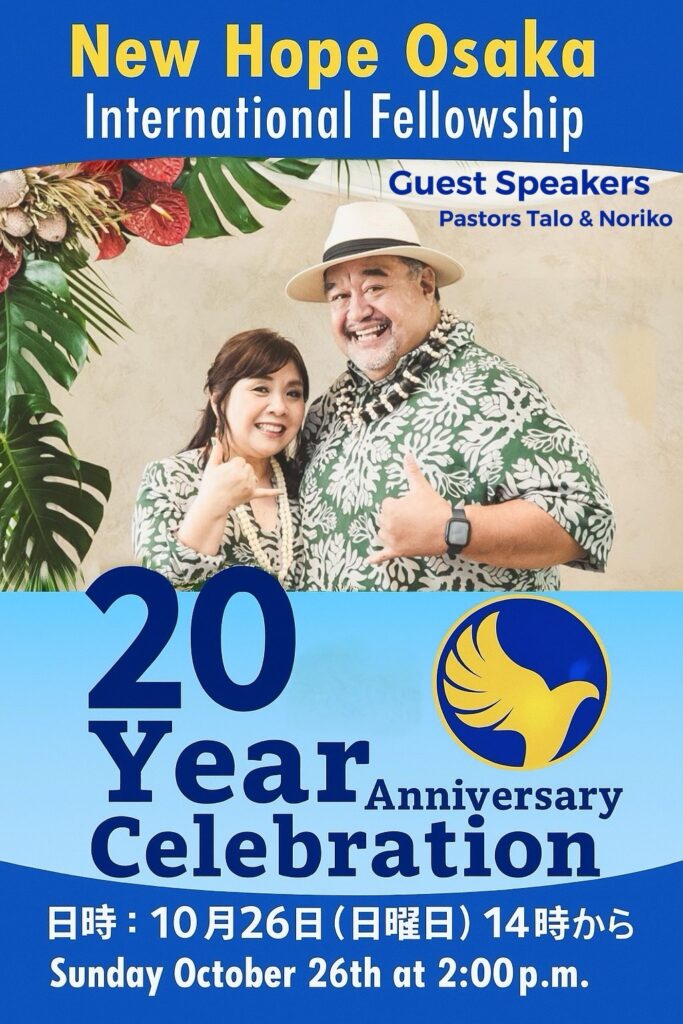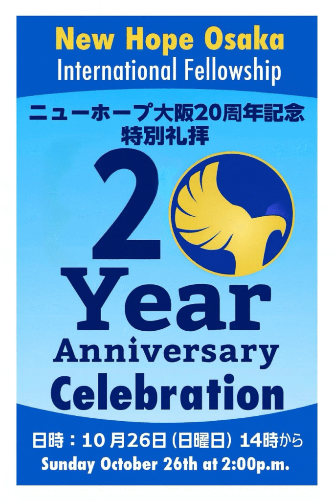 20周年を迎えるにあたり、ぜひ一緒にお祝いしましょう!神様がここまでしてくださった素晴らしい御業を共に感謝し、これからの神様のご計画に期待しながら、喜び合う時間になります!